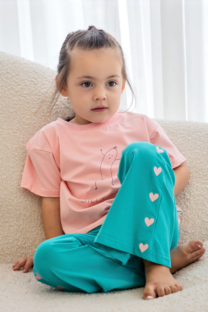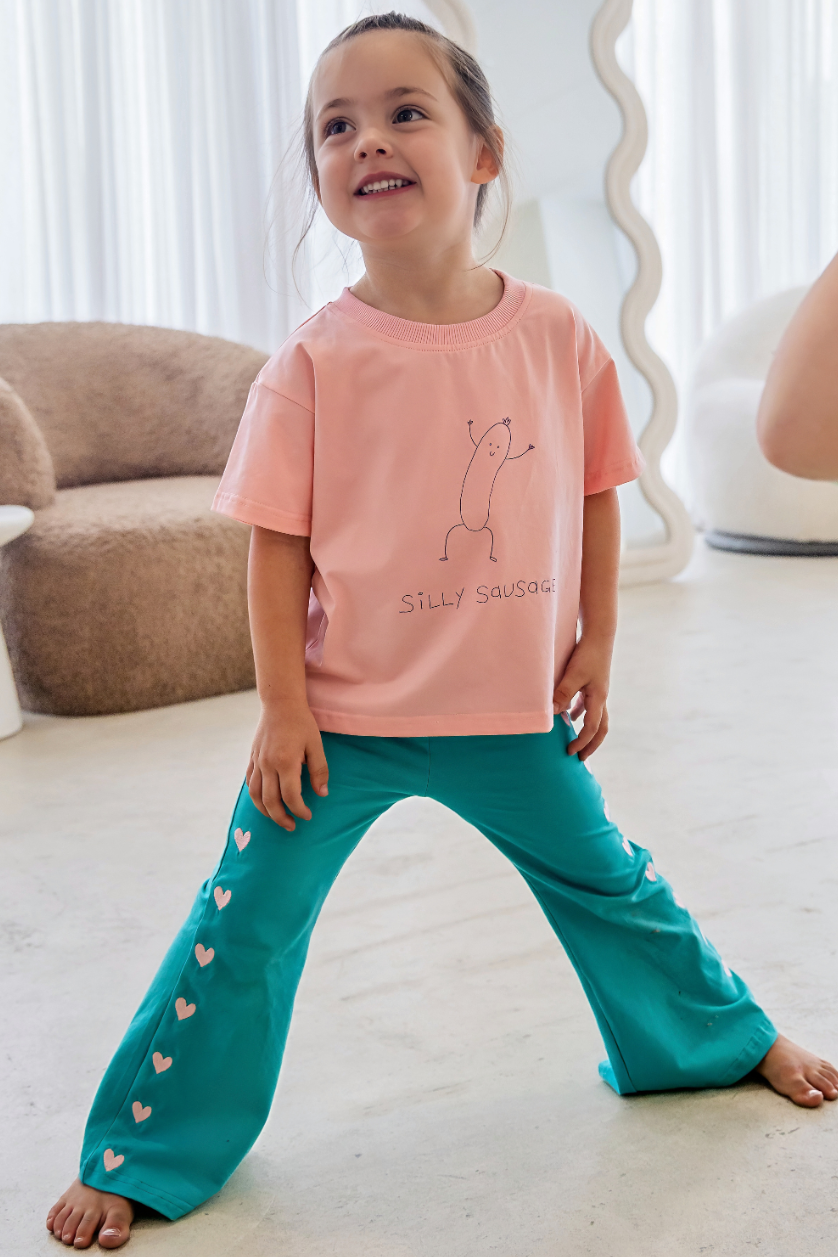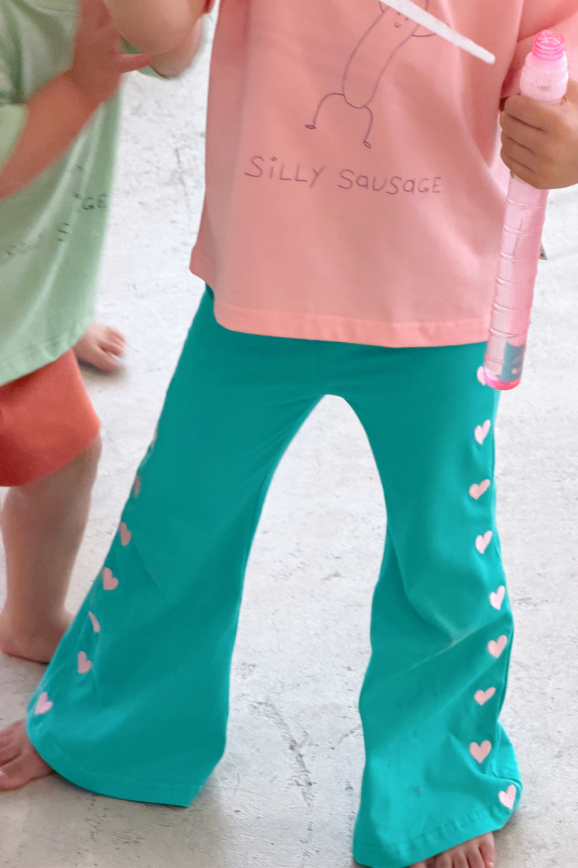 For the budding fashionista, our trending Heart Flares are made from 95% organic cotton and 5% spandex, making it gentle for your child's delicate skin whilst giving it enough stretch to grow with your little one. This style offers comfort and a playful touch to your little love's wardrobe.